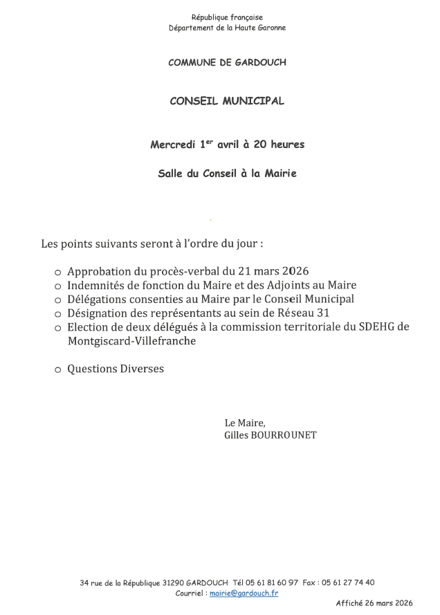 Prochain Conseil Municipal